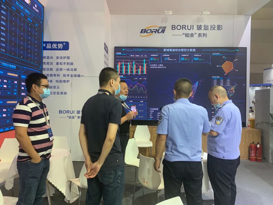 重慶市公安局科信處的領(lǐng)導(dǎo)也蒞臨鉑睿光電展位進(jìn)行參觀指導(dǎo),技術(shù)人員為他們就不同系列的每塊屏都做了詳盡的介紹。