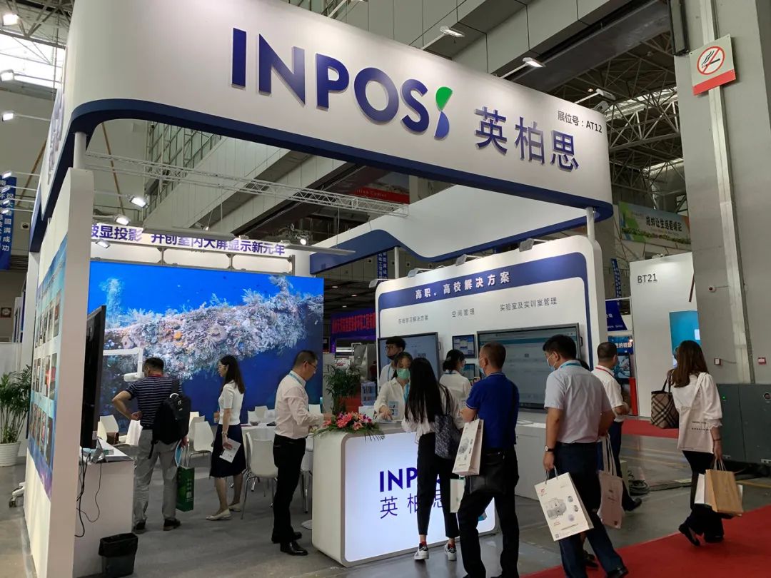 展會現(xiàn)場英柏思以玻顯投影為載體,展示了適合高職高校的教學(xué)信息化解決方案。