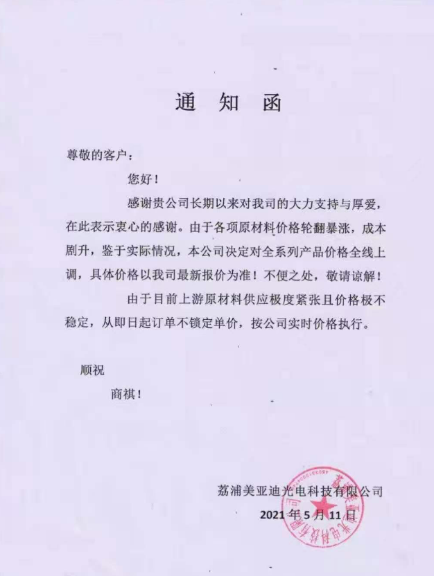 利亞德領(lǐng)漲,眾企跟進(jìn),終端漲價(jià)潮即將來臨